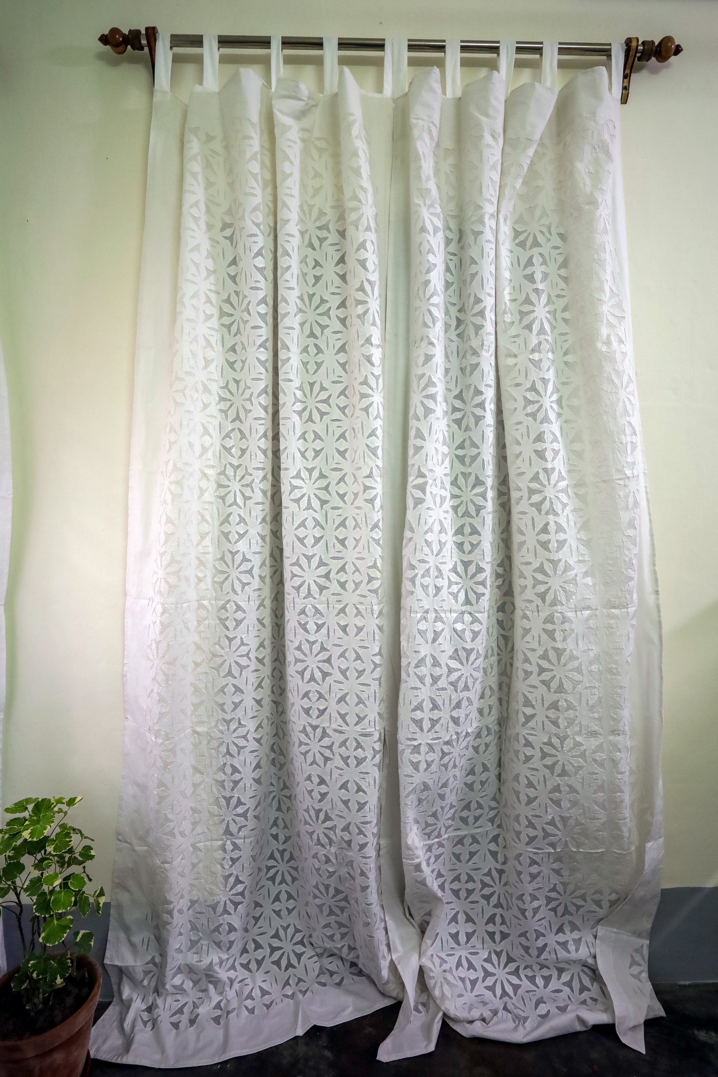 Sheer Applique Cutwork Cotton-Organdy Curtains for Window and Living Room
